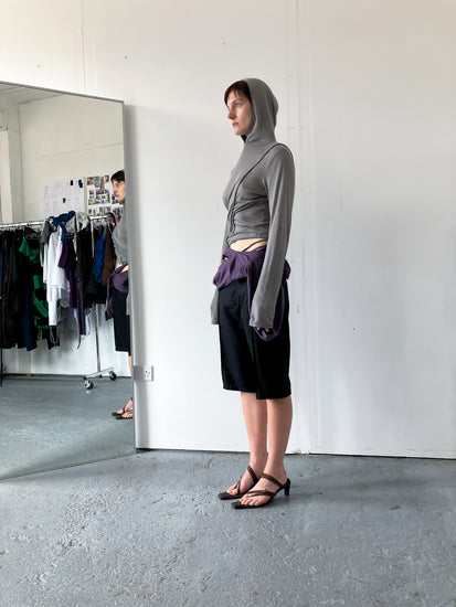 SINISA charcoal jersey longsleeve with piping detail and side metal ring.